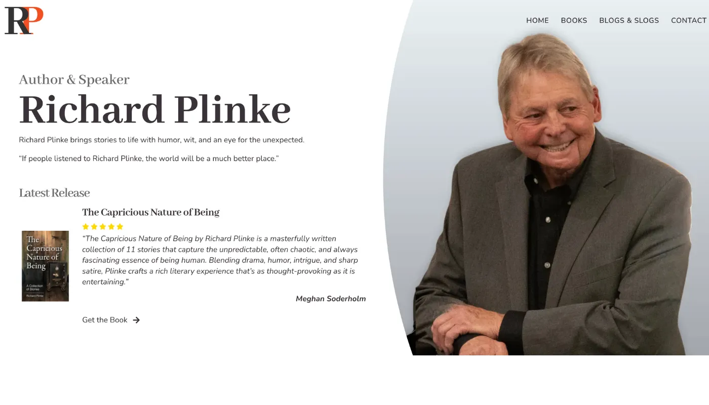 Richard Plinke is a Rutgers-educated author with five published books spanning sales expertise (the Dragon series), pandemic essays (COVID-19 House Arrest), and fiction (The Capricious Nature of Being). He needed an updated professional author website to sell books, promote speaking engagements, and showcase his writing.